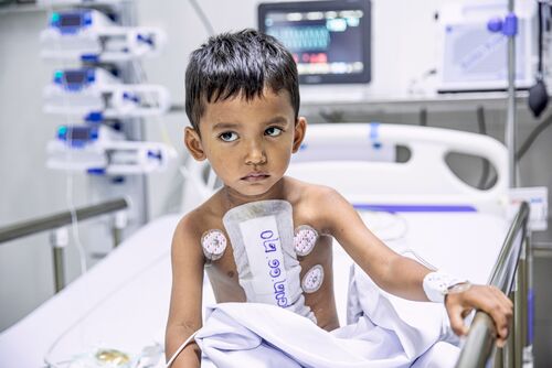 Dieser Ansatz zeigte bald Wirkung – die Kindersterblichkeit sank kontinuierlich bis auf 4,4 Prozent im Jahr 2010. Nach genauer Analyse der Daten war dann rasch klar, dass die meisten der verbleibenden Todesfälle auf Herzerkrankungen zurückzuführen sind. Das war der Startschuss für Beat Richners «Herz-Projekt», das er mit Professor Dr. med. Oliver Kretschmar vom Universitäts-Kinderspital Zürich ins Leben gerufen hat: 2011 eröffnete in Siem Reap die erste Abteilung für Herzchirurgie und das erste Herzkatheterlabor für Kinder in Kambodscha, 2019 wurde die Herzchirurgie auch in Phnom Penh eingeführt. Jährlich werden heute über 1100 Herz-Eingriffe und -Operationen durchgeführt.