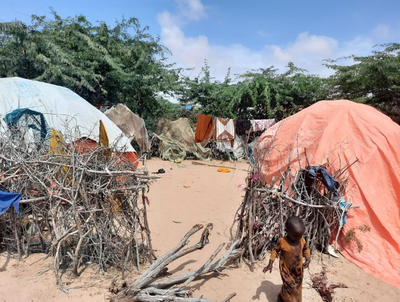 Right: Temporary shelters in Twfiq Camp for internally displaced people in the district Jowhar. (Picture OCHA)