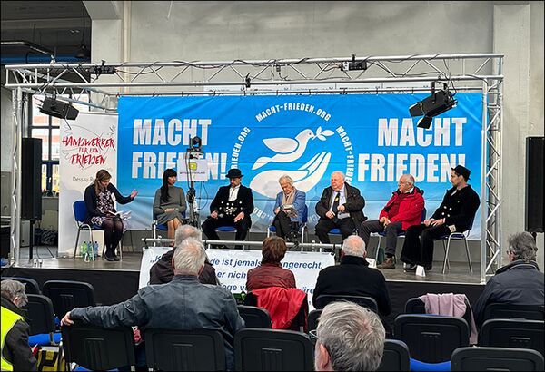 (18 April 2023) For once, it wasn’t the well-known groups of the classic German peace movement that hosted a congress for peace. This time the initiative came from the heart of society, from craftsmen and entrepreneurs from small and medium-sized businesses. On Sunday, 2 April 2023, the “Craftsmen’s Peace Congress” took place in Dessau-Rosslau in Saxony-Anhalt, organised by Karl Krökel, head of the Dessau Metal Guild. About 250 people, twice as many as expected, came to the “Hugo Junkers” Museum of Technology. The star guest of the event was Gabriele Krone-Schmalz, long-time Russia correspondent for the German public TV channel ARD.